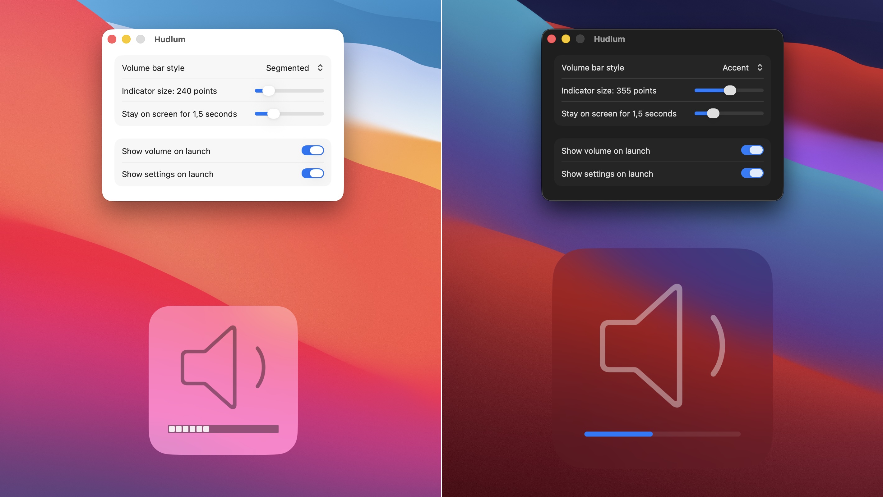 Note that Hudlum doesn’t change anything about macOS. You’ll still get the slider in the top right corner, but you’ll also get Hudlum’s very visible indicator in addition to that whenever you change your system volume. As silly as it may seem, this helped me make peace with macOS 26. The volume indicator was my biggest pain point by far.